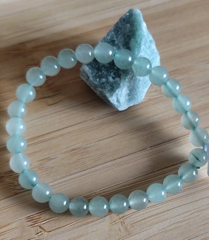 Bracelet en aventurine verte naturelle aux teintes douces et apaisantes. Ses perles lisses apportent une touche fraîche et élégante, idéale pour un style naturel et harmonieux. Monté sur un fil élastique résistant pour un confort optimal au quotidien.