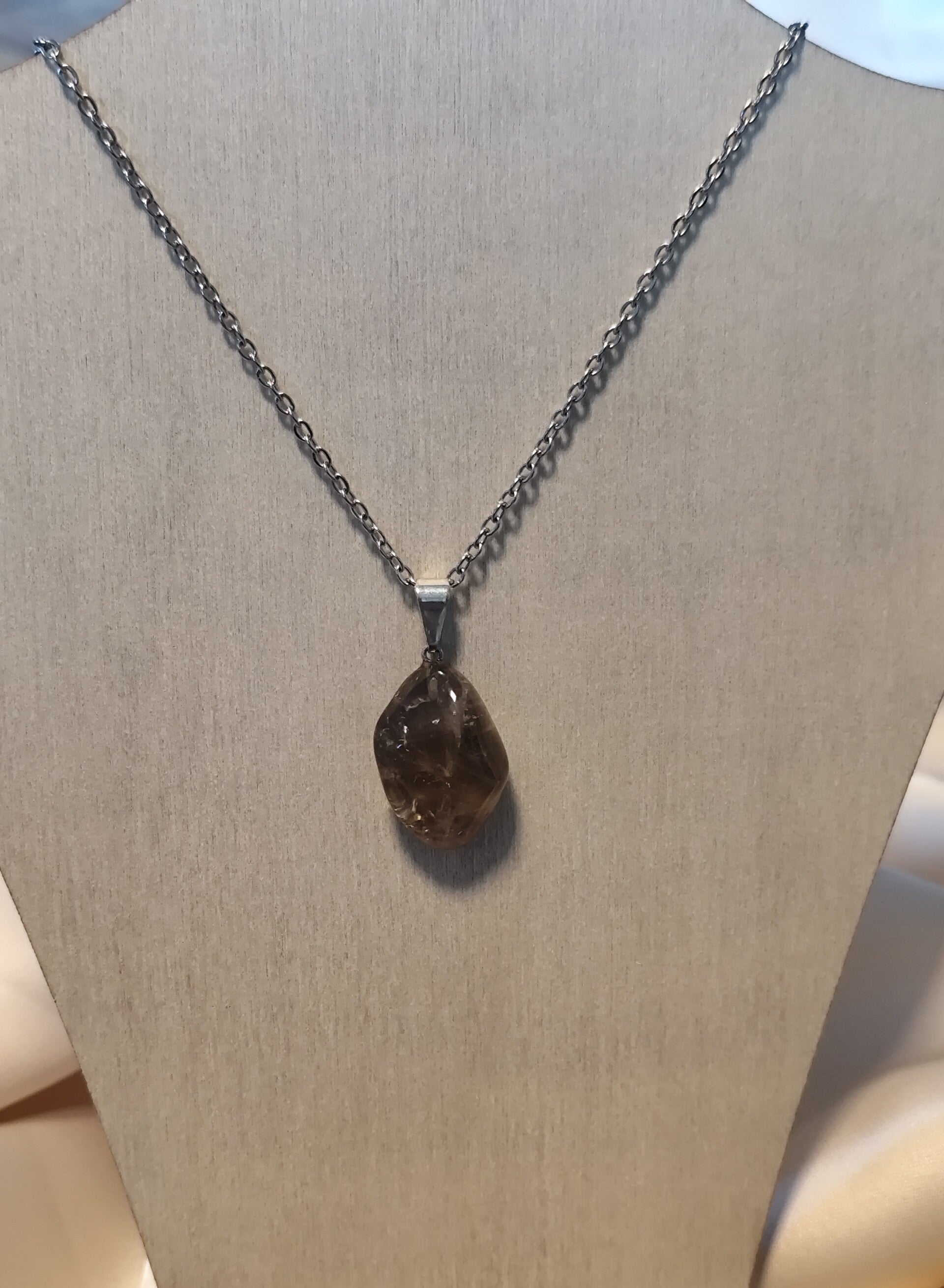 PENDENTIF PIERRE ROULEE CRISTAL DE ROCHE FUME AVEC CHAINE